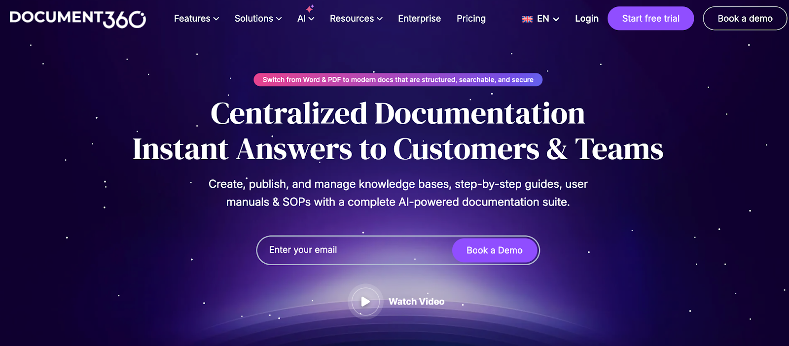 Document360 is a dedicated AI-powered knowledge base platform. Built for internal and customer-facing documentation.
