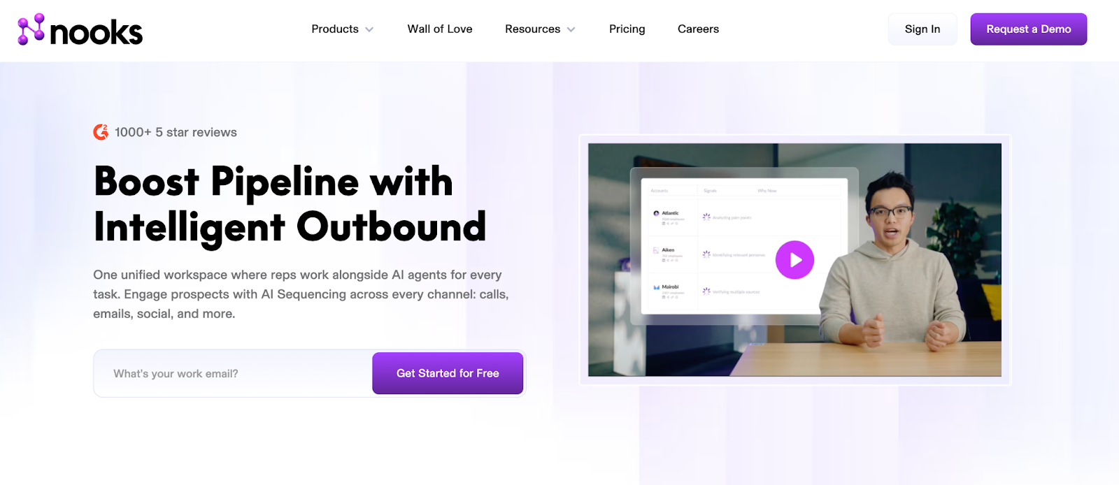 Nooks combines parallel dialing, AI prospecting, and a virtual sales floor into a single workspace.