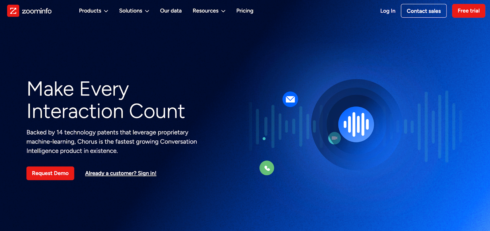 Chorus by ZoomInfo records, transcribes, and analyzes customer calls, with integrations that connect conversation data directly to ZoomInfo's prospecting database.